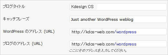 wordpressの一般設定の「WordPress のアドレス (URL)」「ブログのアドレス (URL)」